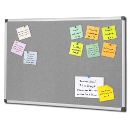 Pris 0,75 kr.Opslagstavle, stof, grå, aluminium ramme, 120xh90